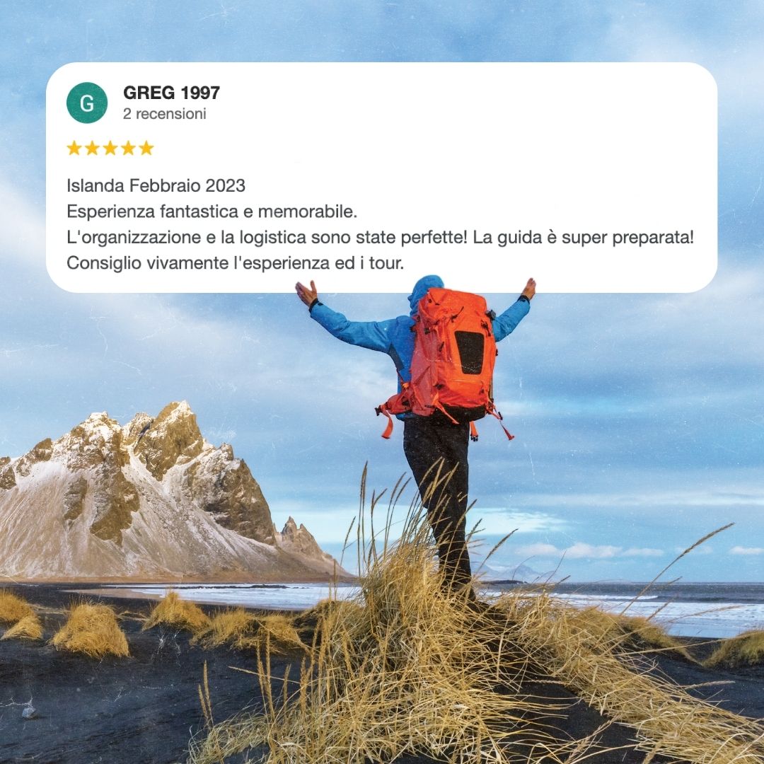 L’Islanda è selvaggia e imprevedibile (è parte del suo fascino!). Se dovessero verificarsi eventi imprevedibili come chiusure improvvise di strade o aree per condizioni meteo avverse, potrebbe variare la località di pernottamento. Faremo comunque tutte le tappe previste, magari in ordine diverso. Il coordinatore si occuperà di tutto per garantirti la migliore esperienza possibile!